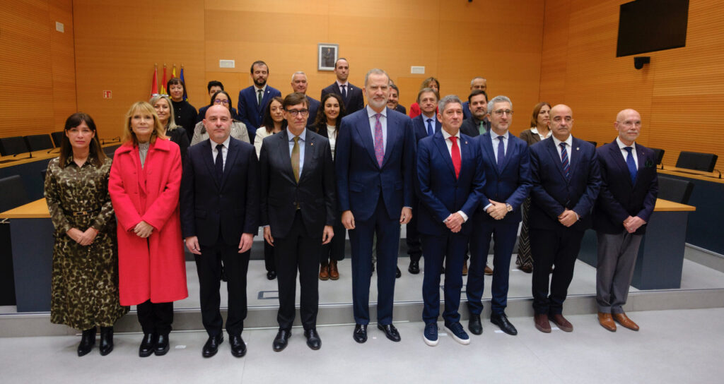 Pel que fa a l’acte protocol·lari de cloenda oficial de les celebracions impulsades pel govern Quirós que culminaven amb la visita del rei, es va fer un primer acte al saló de plens municipal amb la presència de la majoria de regidors socialistes i el set regidors del PP i Vox, a banda del president de la Generalitat Salvador Illa, el delegat del govern a Catalunya, Carles Prieto, el Secretari d’Estat de Política Territorial, Arcadi España i la presidenta de la Diputació i alcaldessa de Sant Boi, Lluïsa Moret. També van estar presents, però en un destacadíssim segon pla, els anteriors alcaldes Núria Marín i Celestino Corbacho. No va estar present, en canvi —sense que transcendissin les causes—, el primer alcalde de la democràcia, el també socialista Juan Ignacio Pujana.