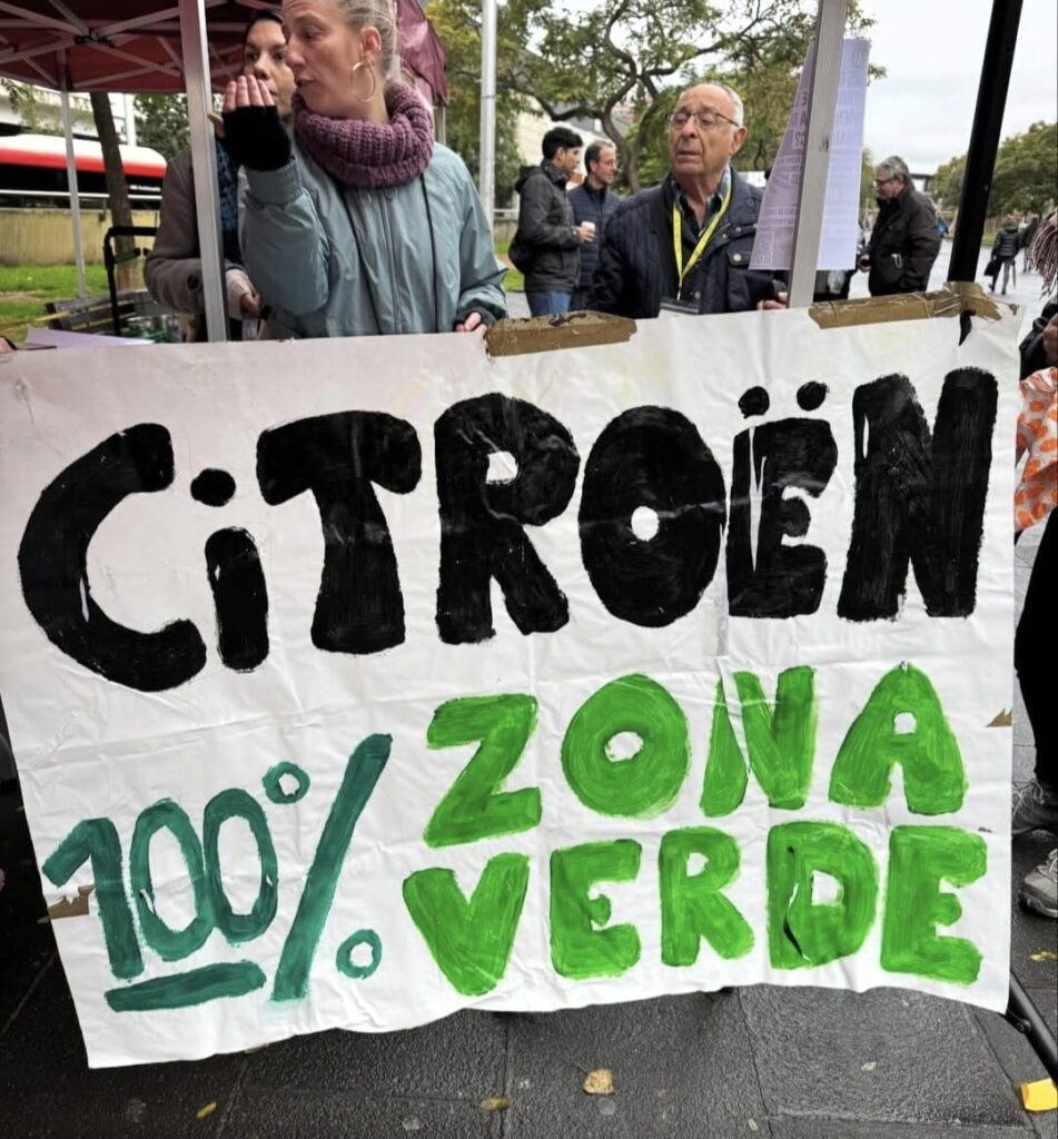 Los vecinos afectados por la recalificación de la “Illa Citroën” se han manifestado este fin de semana en contra del actual proyecto, a punto de aprobarse por el Ayuntamiento de Barcelona, que supone sacrificar un 30% de zona verde para la construcción de bloques de pisos.