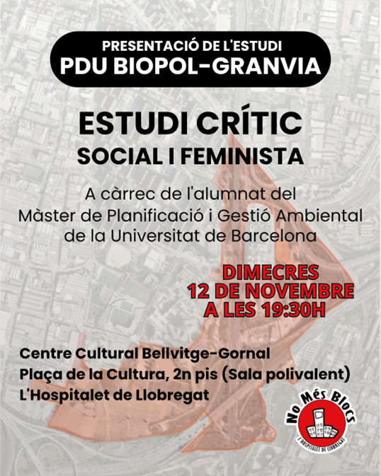 “Un elefant no pot menjar-se sencer; per poder cruspir-lo cal trossejar-lo abans”. Aquesta frase servia per tancar la presentació de l’Estudi Crític Social i Feminista del PDU Biopol-Granvia fet per l’alumnat del Màster de Planificació i Gestió Ambiental de la Universitat de Barcelona.