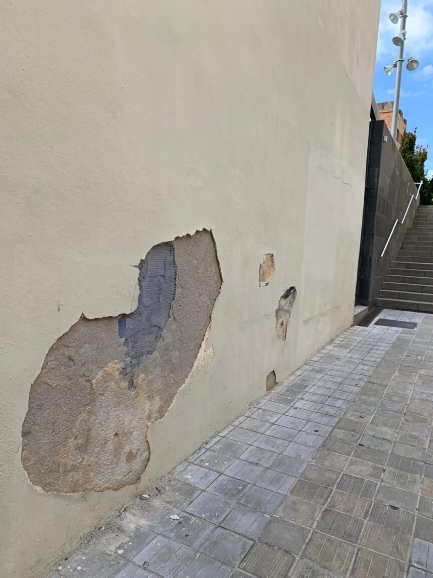 No fa tants anys que es va rehabilitar Can Riera com a seu del Museu d’Història. Doncs ara, la paret exterior presenta aquest aspecte. Es veuen fins i tot els maons, cosa que vol dir que, en poc temps, poden aparèixer humitats interiors. Porta així des de fa molts mesos, per no dir anys. I això, qualsevol brigada amb una mica de ciment i una hora de temps ho tindria arreglat. Desídia? Negligència? Incapacitat?. Tot alhora