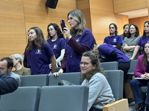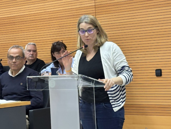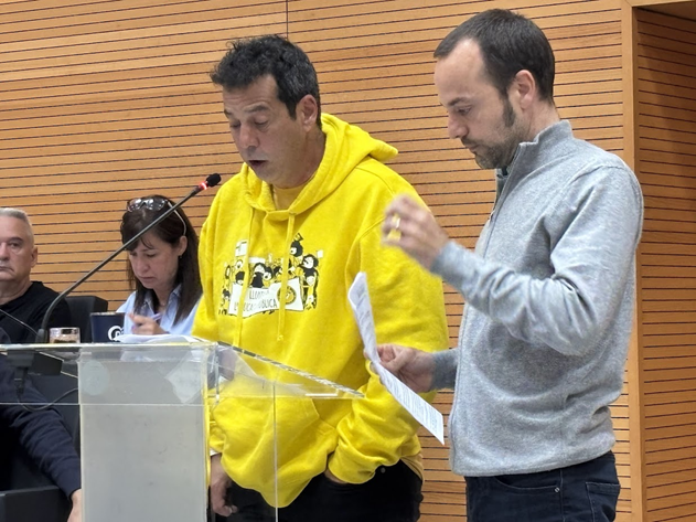 Dos representats del sindicat USTEC van explicar les raons de les mobilitzacions del sector educatiu a la ciutat i a tota Catalunya, tot i demanant el suport dels grups municipals a les seves reivindicacions recollides en una moció presentada conjuntament pels Comuns i ERC que es va votar més tard.