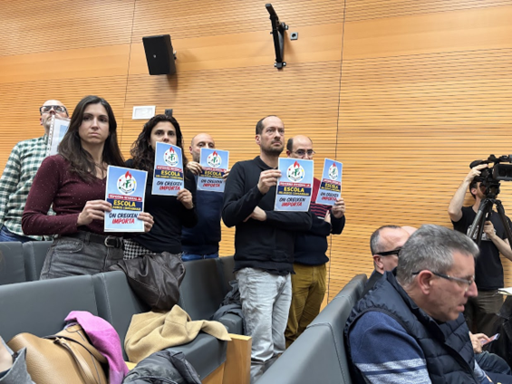 El ple va poder conèixer la veu de l’AFA de la escola bressol Casa dels Arbres, en nom del seu centre i del conjunt de les escoles bressol de la ciutat, exposant els greuges i les dificultats del treball en el conjunt de les escoles bressol de l’Hospitalet que porten anys esperant solucions. La intervenció va estar acompanyada d’una concentració en la plaça de Ajuntament famílies i professionals de les escoles bressols convocades per l’entitat Famílies de l’H que agrupa a aquests centre.