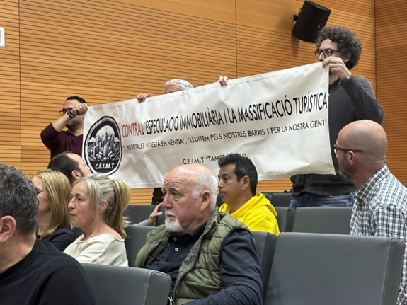 Els representants de la plataforma van explicar molt resumidament la situació d’emergència habitacional que s’està patim, marcada per la manca d’habitatge digne a preus accessibles, la pràctica inexistència de lloguer social, i la creixent especulació immobiliària provocada per l’arribada de fons voltors d’inversió i l’augment de la turistificació dels barris de la ciutat. En aquest senti, la plataforma demana del govern municipal el manteniment de de moratòria a habitatges d’us turístic i la seva ampliació a residencies d’estudiants i hotels en tota la ciutat. Al mateix temps exigeixen el control dels pisos i habitacions de ll0guer temporal i que l’Ajuntament estableixi una intensa política d’habitatge, incrementant el minso parc públic d’habitatges de lloguer social, adoptant les opcions proposades per la ciutadania en el procés participatiu de la Taula d’Habitatge.